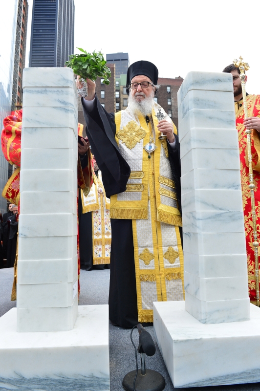 Место традиционного закладного камня заняли 24 кирпича, которые заложили руководители города и штата, транспортного управления штатов Нью-Йорк и Нью-Джерси, фондами и частными попечателями проектов Греческой архиепископии. Св. Никольский храм-памятник, как полагают, будет освящен к 100-летию начала служения в погибшей церкви – в 2016 году.