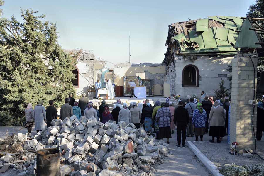 Без обзира на то што су многи храмови у ратом захваћеним подручјима Донбаса срушени, верници не престају да се моле и настављају литургијски живот на рушевинама својих светиња.