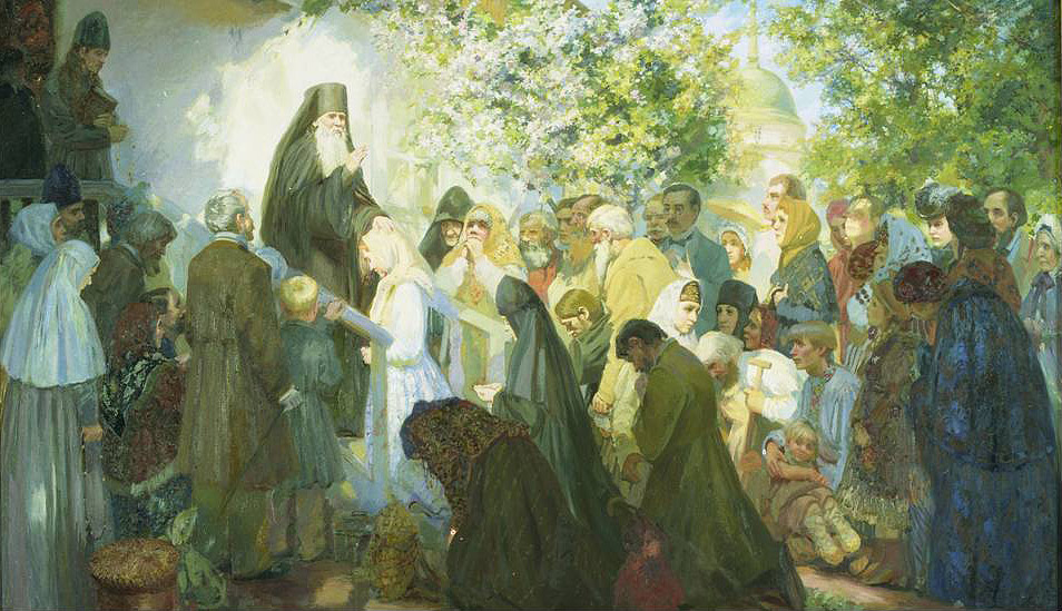 По совету и благословению Старца мы пробыли в Оптине еще три дня, чтобы поговеть. Исповедь у него оставила в нас глубокое впечатление. Отговев и причастившись Святых Христовых Таин в самый день памяти святых апостолов Петра и Павла, мы еще были у батюшки и опять, по его благословению, остались еще на три дня, несмотря на то, что получали об сыне неудовлетворительные известия. Батюшка каждый день повторял: “Не беспокойтесь, Господь вас утешит, веруйте только в Его милосердие”.