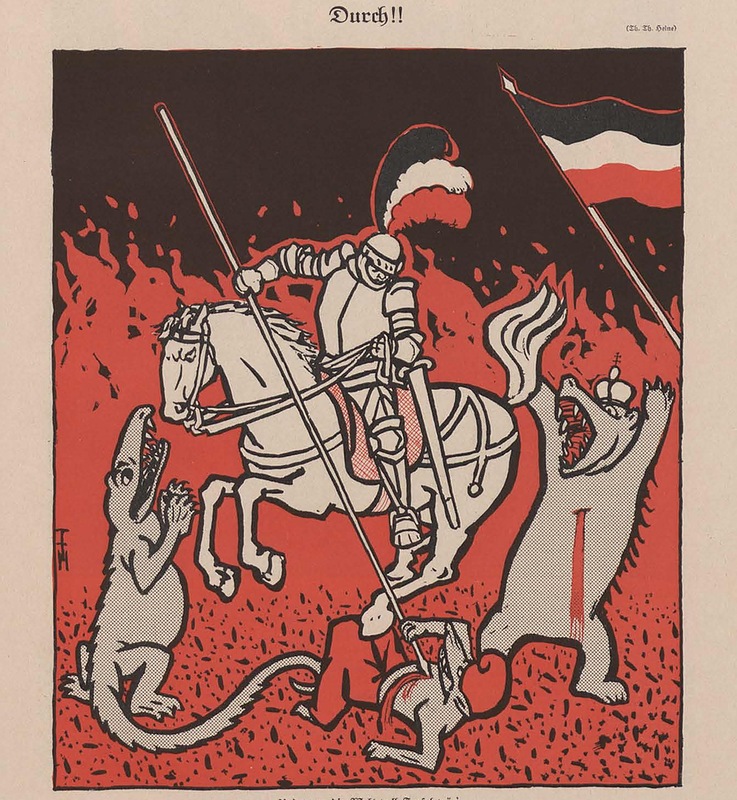 Немецкий рыцарь поражает врагов. Немецкая открытка 1914 года Немецкий рыцарь поражает врагов. Немецкая открытка 1914 года