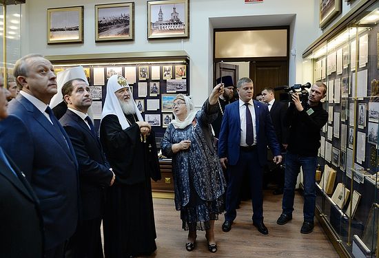 Из новоосвященного храма Святейший Патриарх Кирилл прошел в музей истории Саратовской митрополии.