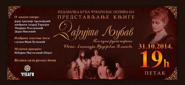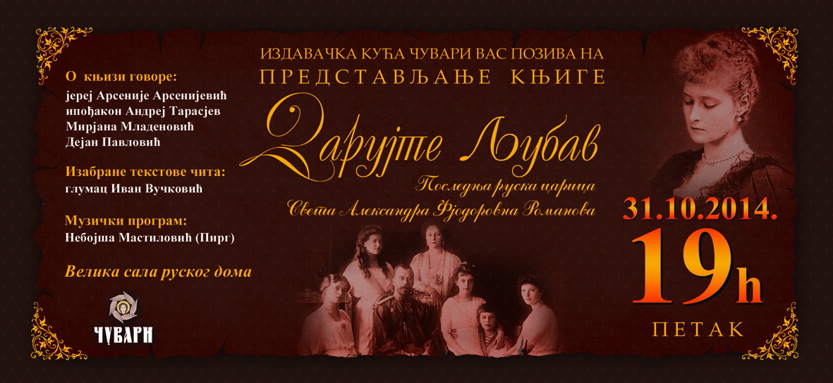 У великој сали Руског дома у Београду, у петак, 31.10.2014. године, издавачка кућа Чувари представиће своју нову књигу "Дарујте љубав".