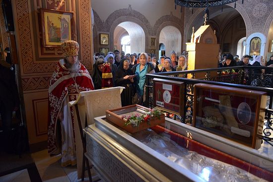 Прихожане прикладывались к почивающим в храме святым мощам Елизаветы Федоровны, которая трагически погибла в Алапаевской резне вместе с другими членами Царской Семьи.