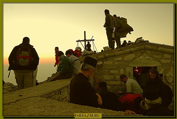 С большим трудом с молитвой поднялись к Панагии – храму Пресвятой Богородицы недалеко от вершины горы. Две знакомые группы были уже там, располагались, раскладывали припасы для ужина.