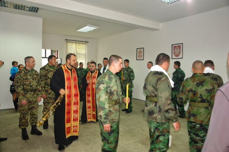 После успешно завршене војника на добровољном служењу војног рока у 3. Центру у Лесковцу Команде за обуку Војске Србије обављена је света тајна крштења војникâ, који су изразили жељу да током војног рока постани војници Христови.