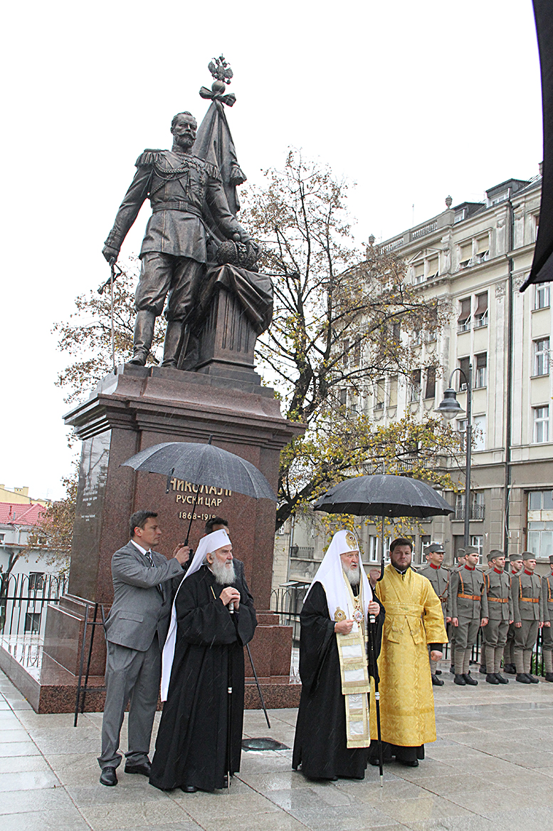Председник Србије г. Томислав Николић открио је данас, после литургијског сабрања у Храму Светог Саве, споменик цару Николају Другом Романову.