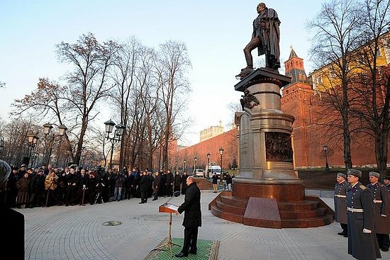 Замечательно, что в этом месте в присутствии главы государства мы сегодня освятили памятник выдающемуся правителю земли Русской государю императору Александру Павловичу, с чем я всех нас и поздравляю. И благодарю Вас, Владимир Владимирович, и всех тех, кто принял это решение, которое увенчалось установлением замечательного памятника на самом лучшем месте в Александровском саду».