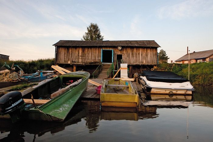 На сборы уходит ровно десять минут; полностью упакованная, с чашкой горячего кофе выхожу из домика в мокрое молоко серо-синего цвета — солнце еще только начинает пускать лучи на этот край. Наскоро втягиваем в себя горячую бодрящую свежесть и собираем необходимое в хозпостройке рядом с причалом: бензобак, непромокаемый мешок с биноклем, сиденьями и резиновыми перчатками. Рыбаки уже отплыли на озеро по прорытому в советские годы каналу, ведущему от Рыбколхоза к озеру.