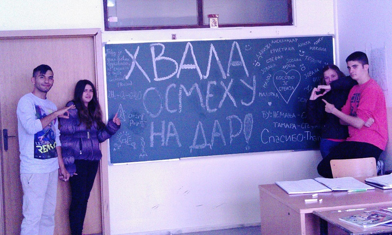 Фондација ,, Осмех на дар“ је заједно са удружењем ,, Фонд дијаспоре за матицу“ и Хуманитарном организацијом ,, Срби за Србе“ крајем прошле недеље спровела други део акције ,, Школске табле за Косово и Метохију - исцртајмо осмехе на њима“, током које је подељено 45 табли. Табле су подељене у 12 школа широм Косова и Метохије и то: четири табле ОШ,, Браћа Аксић“ у Сувом Долу, десет табли ОШ,, Десанка Максимовић“ у Косовској Каменици, четири табле ОШ,, Доситеј Обрадовић“ у Прековцу, две табле ОШ,, Доситеј Обрадовић“ у селу Зебинце, две табле ОШ,, Доситеј Обрадовић“ у селу Извор, две табле ОШ ,, Бора Станковић“ у Коретишту, четири табле ОШ ,, Свети Сава“ у Јасеновику, три табле ОШ,, Кнез Лазар“у селу Ливађе, две табле ОШ,, Миладин Митић“ у Чаглавици, три табле ОШ ,, Миладин Поповић“ у селу Бостане, и девет табли Гимназији и ОШ ,, Доситеј Обрадовић“ у Ораховцу.