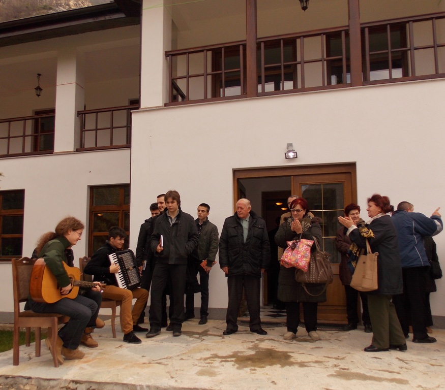 Призренски богословци су отпевали игуману Михајлу,, Многаја љета“, а потом извели и неколико призренских песама, уз хармонику, гитару и тарабуку. Песма се ширила портом манастирском и кањоном Бистрице, а неколико Призренки је повело и коло. Нико није крио радост што се опет чује српска песма у Душановом граду, што се ту живи, не као некада, али са надом да ће се речи оца Слободана остварити,, да све буде као у време цара Душана“, великог владара и ктитора ове светиње под Крстацем, у подножју Шар планине.
