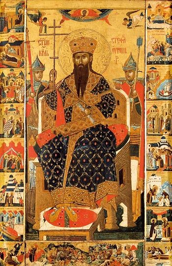 Непријатељи Православља Татари, покоривши православну Русију, устремише се на друге словенске православне земље. Нарочито велика опасност стаде грозити словенским државама Балканског Полуострва од стране Кримског хана Ногаја. Татарска војска, шиљана од Ногаја, опустоши Бугарску, па стаде упадати и у Србију. Бугарска на неко време паде под власт Татара; а такав удес претио је и Србији. Али српски краљ Милутин предузе одлучне мере. Пошто није био у стању да се војном силом одупре моћном татарском хану, он ступи с њим у преговоре, и спречи најезду Татара, али би принуђен да хану да као таоца свог десетогодишњег сина Стефана, и са њим неколико знатних српских велможа. Но Господ помагаше побожном дечаку краљевићу Стефану у његовим недаћама, јер се он сав беше предао помоћи свемилостивог Господа и ка Њему јединоме гледаше. И ускоро међу Татарима избише међусобице, које се завршише убиством Ногаја. Стефан искористи те смутње, и након три године врати се у отаџбину.