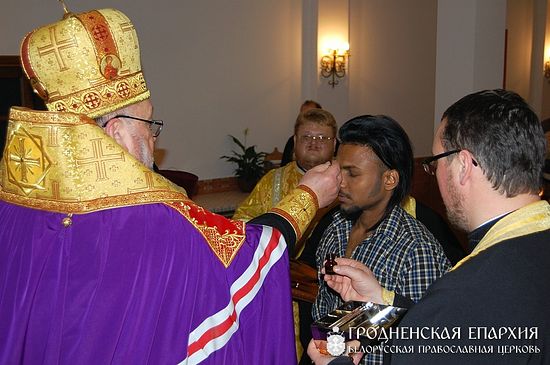 Желание Дэнни, которого в приходе все зовут Даниилом, исполнилось 23 ноября в храме Коложской иконы Богородицы. Архиепископ Артемий с сослужившими ему секретарем гродненской епархии протоиереем Анатолием Ненартовичем и клириками храма совершили над ним чин присоединения к Православной Церкви.