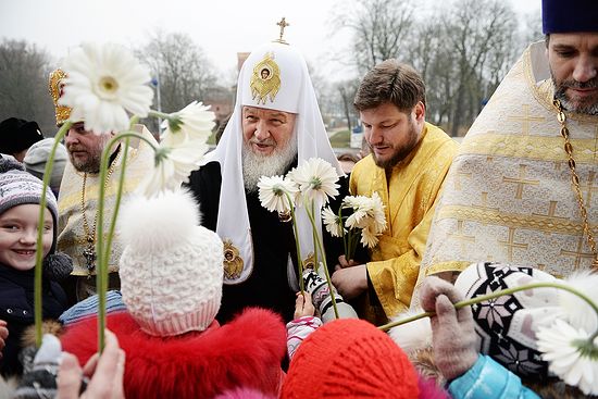 По окончании богослужения настоятель Александро-Невского храма иерей Александр Соколов от лица духовенства и прихожан приветствовал Святейшего Патриарха.