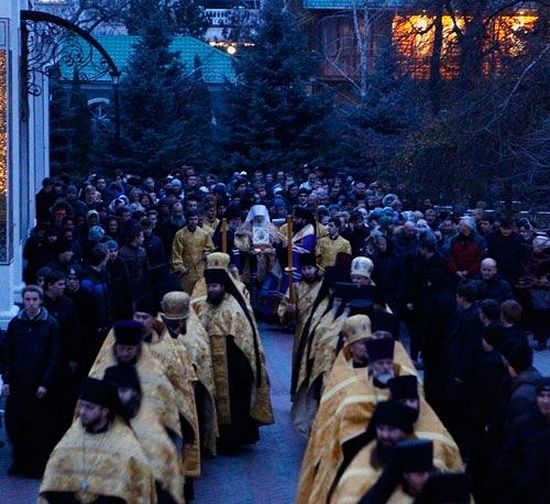Затем митрополит Агафангел в сослужении епископов, духовенства и братии обители совершил всенощное бдение перед святынями, которые по благословению правящего архиерея Санкт-Петербуржской епархии переданы в дар Свято-Успенскому Одесскому мужскому монастырю на вечное хранение.