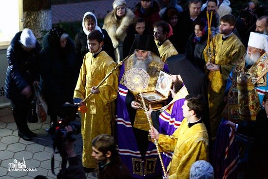 У святых врат обители эти святыни встречали Высокопреосвященнейший Агафангел, митрополит Одесский и Измаильский, Преосвященнейшие викарные епископы Аркадий и Диодор, городское духовенство, братия монастыря и многочисленные верующие.