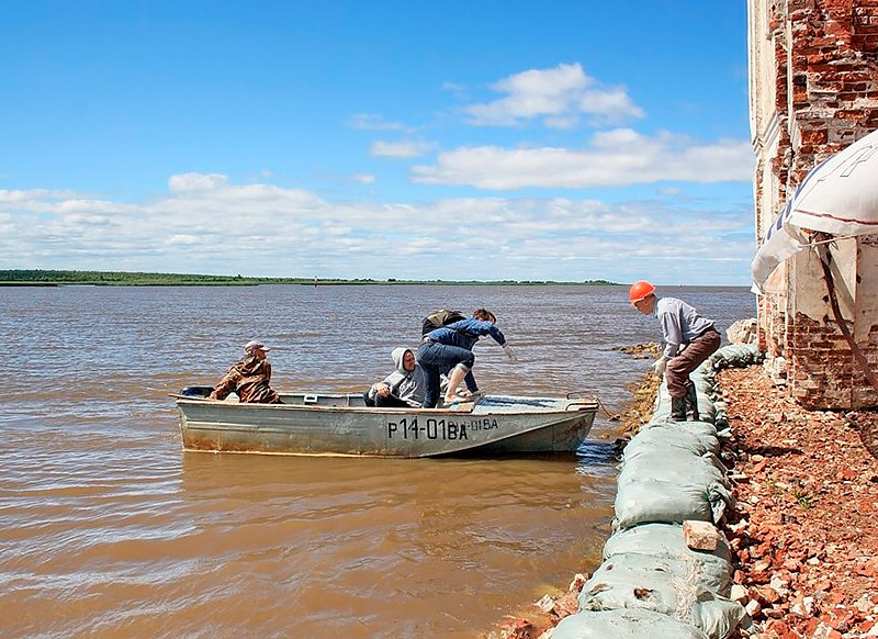 Наша дамба просто отсрочила гибель храма. За время, которое мы получили, построив дамбу, мы должны найти средства, чтобы его спасти. Дамбу мы постоянно укрепляем. Каждодневное воздействие волн, весенний лед – все это серьезные испытания для такого не особо крепкого сооружения.