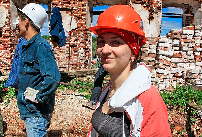 – Люди такие подбираются… – Анор задумчиво смотрит в окно. – Даже не скажу, что постоянные, но… Такие, с корнями, что ли. Как деревья. Как дубы. Очень трудолюбивые, любящие физический труд. А это, оказывается, такая особенность, которая не всем присуща. Средний возраст – 28–45 лет. А вообще, от 16 до 72 лет, и такое бывало, крайне уникальные люди. Крохино – это для внутренне зрелых людей, которые понимают, зачем они едут, куда они едут. Тяжелая работа, тяжелый, немного непонятный всем объект… Это специфические люди. В последние годы костяк – это мужчины. Оно и понятно, все-таки тяжелая работа. Но есть несколько женщин (и я, естественно, себя к ним причисляю), которые очень преданы храму. Не проекту, а именно храму. Которые влюблены, прочувствовали что-то такое неуловимое, такое иррационально-эмоциональное. Женщинам тоже есть, что делать. Одна как встала за бетономешалку, так и делала раствор весь день. Уж если женщина в 72 года нашла, чем заняться! Никто не надрывается, я и сама всегда находила себе работу. Завалы разбираем, тачки нагружаем – а мальчики везут. Ну, и по хозяйству, конечно. Питание самое простое, всё готовим загодя в городе, берем с собой термосы, чайник, чай, кофе.