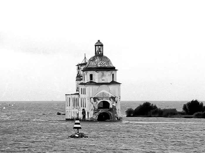 «Светлый-светлый», «белый-белый» храм, о котором говорит Анор, – это три стены и колокольня, торчащие из воды