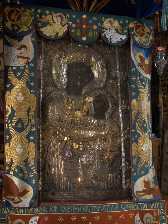 Монастырские отцы не сомневались, что паломник говорит правду. Они знали эту монету, равно как и Госпожу, которую видел испуганный паломник. Они подошли к часовне. Просмонарий открыл дверь. Как монета могла исчезнуть из-под закрытого стекла иконы Богородицы? Они открыли его и, готовясь к великому молебному канону, со страхом положили монету на место – на шею Пресвятой Богородицы, где она остается и по сей день.
