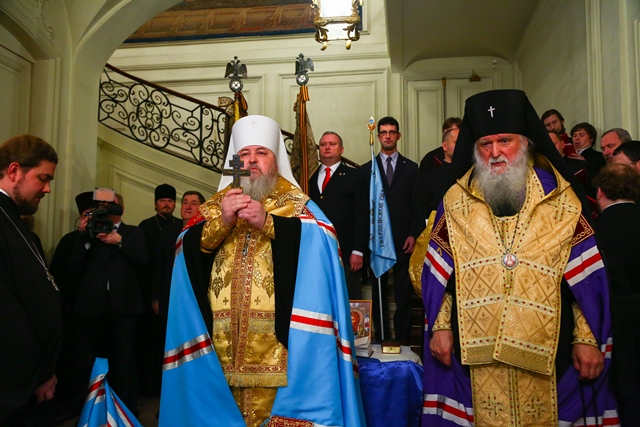 За богослужением молились архиепископ Женевский Михаил (Русская Православная Церковь Заграницей), епископ Корсунский Нестор, а также протоиерей Николай Ребиндер, настоятель Трехсвятительского храма в Париже, иеромонах Иосиф (Павлинчук), секретарь епархии по окормлению молдавской диаспоры и иерей Максим Политов, секретарь епархии.