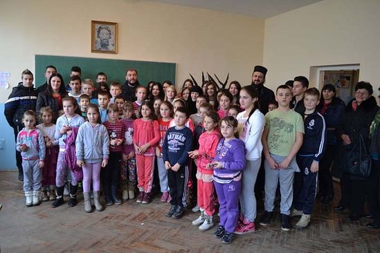 Новац су прикупиле чланице Кола српских сестара из региона Лос Анђелеса. Основци су за госта извели пригодан програм, а епископ Максим се интресовао за школску библиотеку и кабинет информатике у овој школи, коју похађају ђаци из суседних села Девет Југовића и Горње Брњице.