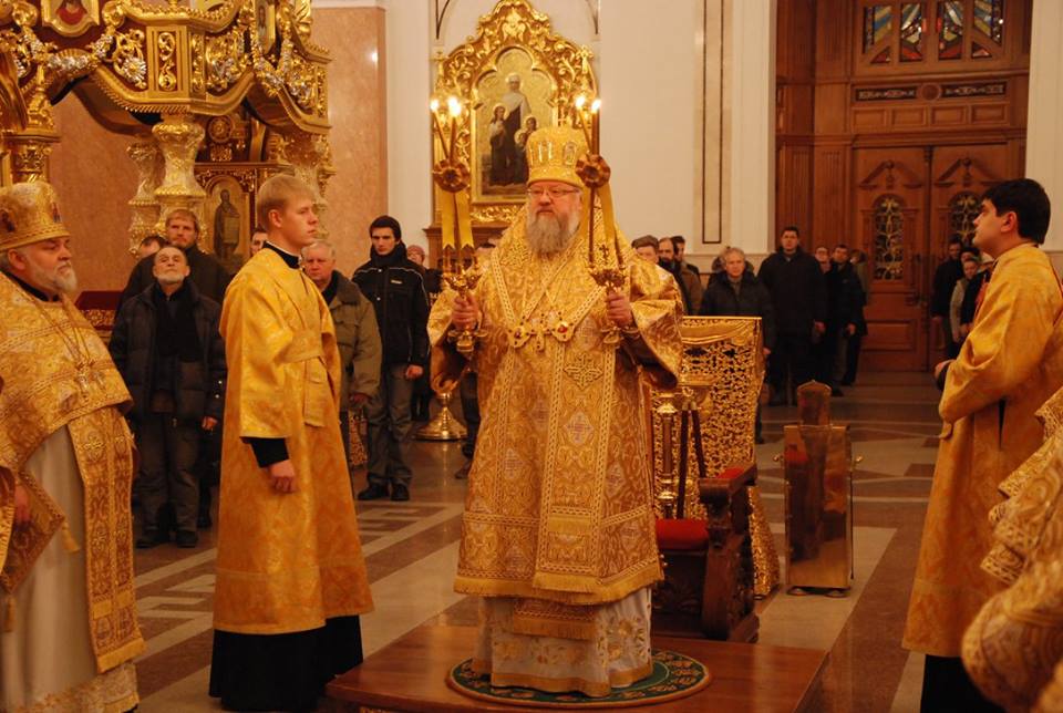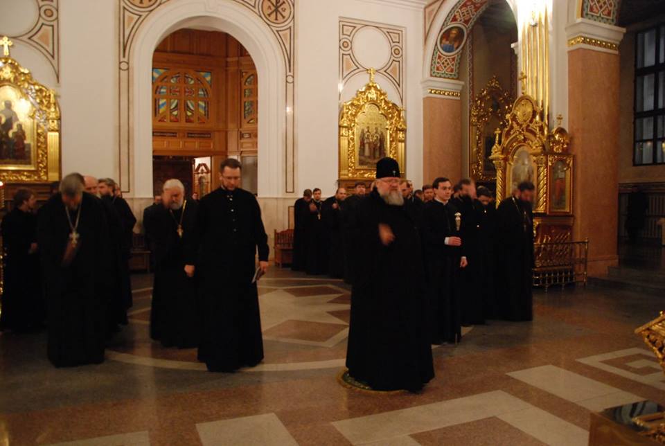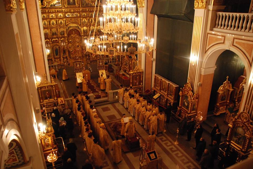 В новогоднюю ночь в Спасо-Преображенском кафедральном соборе Донецка состоялось соборное богослужение городского духовенства, сообщает "Донбасс православный".