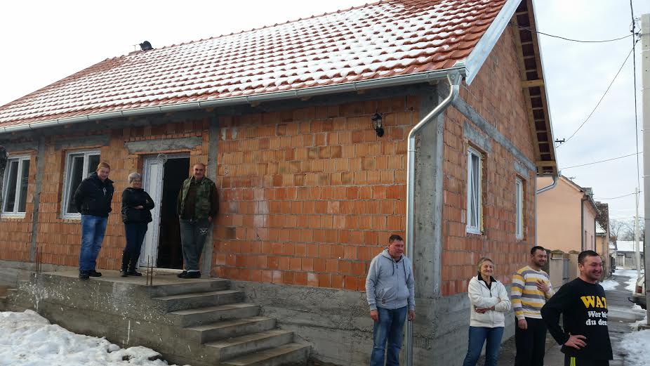 Неимари ових кућа са великом екипом зидара и мајстора су у изузетно кратком временском периоду током новембра започели радове на изградњи ових кућа. Извођач радова је занатска радња Врекић из Манђелоса, која се својим радом већ показала на подручју Епархије сремске. Епископ Василије је заблагодарио свима градитељима и г. Душану Врекићу на њиховом свакодневном раду од јутра до мрака, када су се екипе градитеља и мајстора смењивале како би се породице могле до зиме уселити у своје куће.