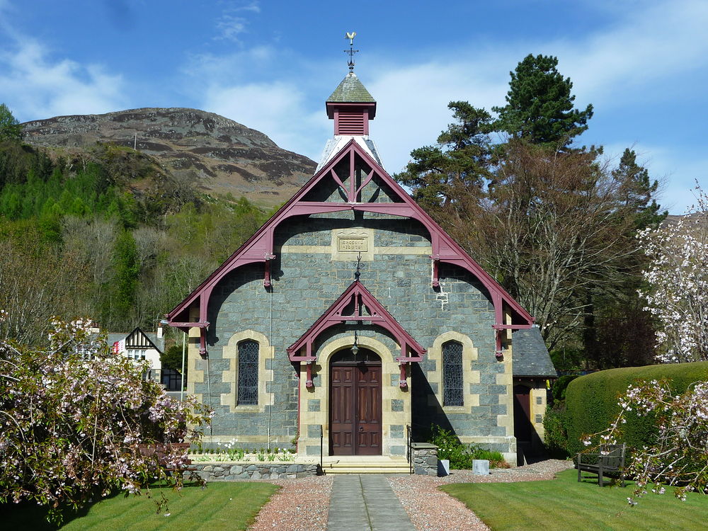 In the village of St Fillans in Perth and Kinross in central Scotland there is an ancient pre-Norman chapel dedicated to St. Fillan. According to local tradition, St. Fillan for some time lived on a hill nearby. An Episcopalian church in the village of Kilmacolm in Inverclyde is also dedicated to him. The nineteenth century Catholic church in the village of Houston in Renfrewshire in west central Scotland bears his name. There is also an ancient ruined church of St. Fillan not far from it, in the parish of Houston and Killellan. Close to the village there are two holy wells, dedicated to St. Fillan and St. Peter, which still have curative power. There are several other partly surviving early churches dedicated to this saint, scattered in different parts of Scotland, mostly on islands, which so much attracted Celtic saints by their severe beauty. Outside Scotland, St. Fillan is venerated in the Irish counties of Westmeath and Laois.