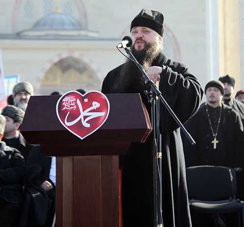 «Мы заявляем решительное "нет" злу, которое стремится внести раздор между нашими религиями, — заявил, обращаясь к собравшимся, епископ Варлаам. — Мы всегда были вместе и остаемся рядом с вами».