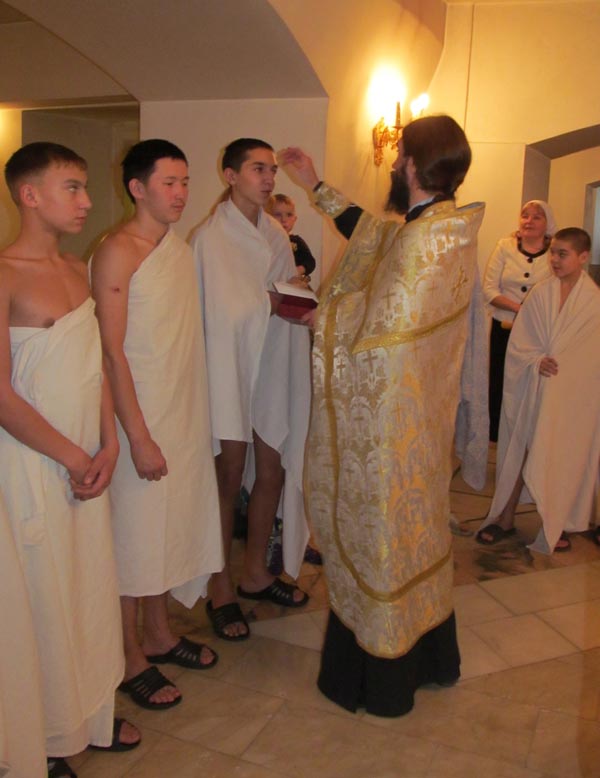 22 января 2015 года в Спасо-Преображенском соборе приняли крещение 11 учащихся Специального профессионального училища г. Абакана. Ребята с начала учебного года проходили огласительные беседы, учили молитву Отче Наш, читали Евангелие и Символ веры, сообщает пресс-служба Абаканской епархии.