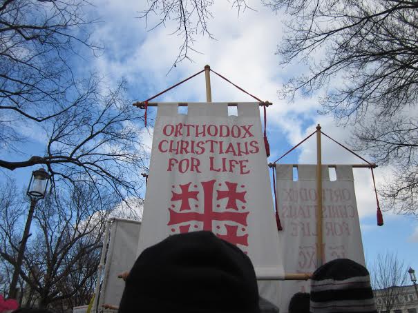 On Thursday January 22, 2015, under a beautiful blue sky and a warm sun, Fr. Peter Zarynow, Dean of the Washington, DC Deanery, along with other deanery faithful, joined tens of thousands of people from all over the country who came to Washington DC for the 41st annual “March for Life.” Among those in attendance were 3 Bishops and numerous Clergy, Seminarians and faithful Orthodox Christians marching under the “Orthodox Christians For Life” banner. As they marched from the National Mall to Constitution Ave, past the Capital Building and finally to the Supreme Court Building they raised their voices in song giving honor to the Mother of God and singing portions for the Resurrection Matins. Finally, in the shadow of the Capital, the marchers gathered in peaceful park to sing a Panachida and venerate an Icon of the Mother God greeting Elizabeth, with images of our Lord Jesus Christ and John the Forerunner in their wombs.