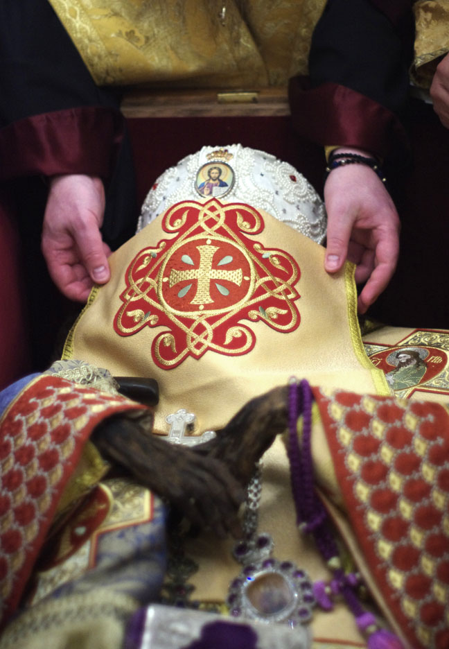 Знаешь, в Сан-Франциско микроклимат сырой очень, влажно от океана. Вообще, мокрый и холодный туман, окутывающий город — одна из визитных карточек Сан-Франциско. Так вот, когда мощи святителя (а он лежал в металлическом гробу) извлекали, гроб проржавел, одежда истлела, а мощи оставались нетленными.