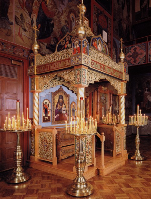 Сейчас они в деревянной раке под стеклом, а под ракой сделано такое отверстие, куда желающие могут опустить записки святителю.
