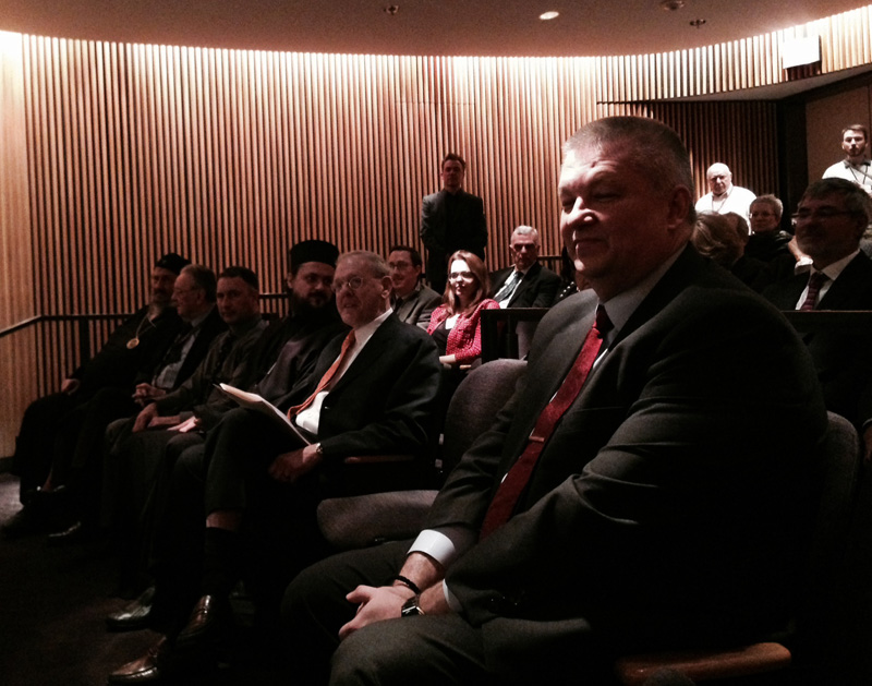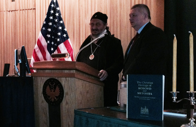 О књизи су говорили Преосвећена господа Епископи херцеговачки др Атанасије и западноамерички др Максим, као и г. Стивен Мајер, пензионисани професор са Националног универзитета за безбедност и бивши помоћни директор за Балкан. Грчки архиепископ Димитрије такође је приспео и узео учешћа у разговору о књизи. Присутних је било око шездесет, међу њима и два Албанца.