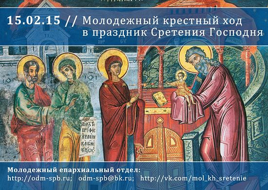 15 февраля в праздник Сретения Господня в Санкт-Петербурге отметят Международный день православной молодежи. Молодежный крестный ход и праздничные мероприятия в этот день будут посвящены юбилейному году памяти святого равноапостольного князя Владимира. В 2015 году 1000-летие преставления Крестителя Руси широко празднуется на государственном и церковном уровне.