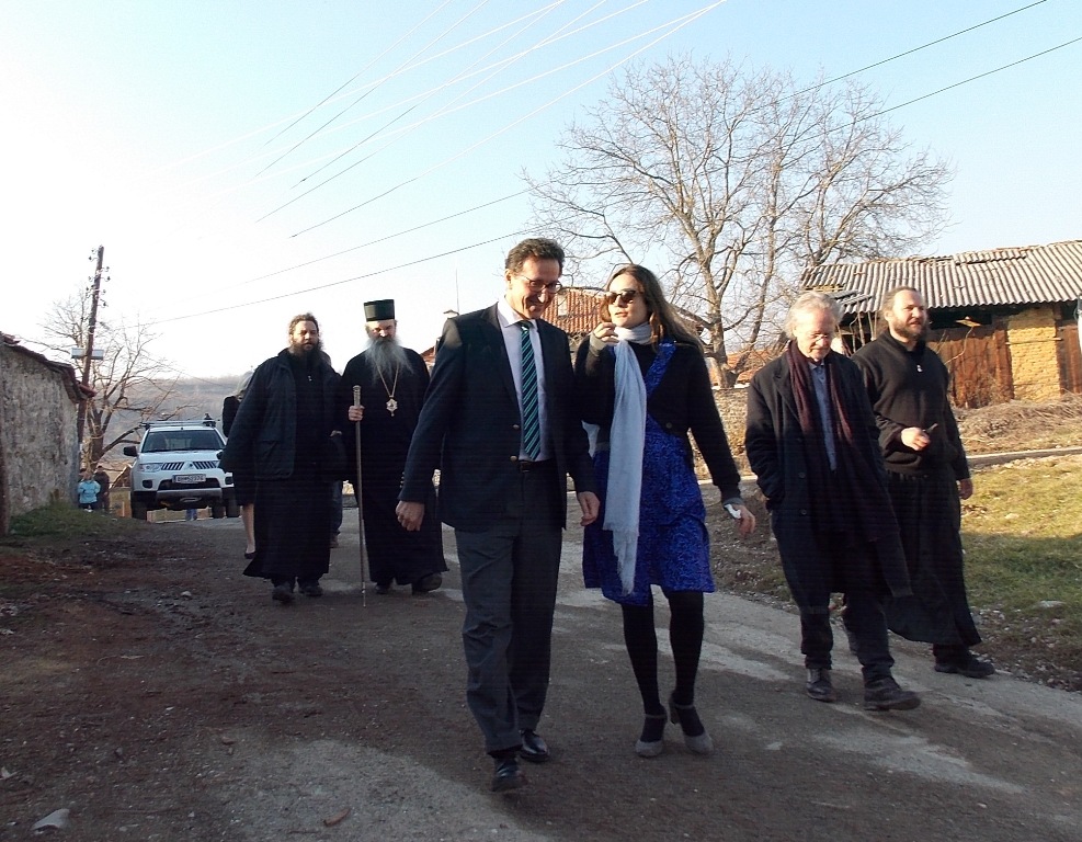 После ноћења у дому породице Петровић у Великој Хочи, за Хандкеа и његове сапутнике, је бруј црквених звона са звоника цркве Светог архиђакона Стефана, био позив на литургију. Има ли лепшег дана од Сретења Господњег да се сретну пријатељи и то у светињи, на литургији. Литургију је по обичају служио отац Миленко, парох великохочански, дугогодишњи пријатељ и домаћин Петеру Хандкеу. Необично лепо време за ово доба године, било је још један разлог да несвакидашњи посетиоци Велике Хоче прошетају сеоским улицама и обиђу светиње. До Кујунџића куле и цркве Светог Николе води их Франческо Скарфи, Италијан, који као и Хандке воли Велику Хочу и ради на пројекту побољшања услова живота у овоме селу. Успут се сусрећу са људима који их поздрављају и захваљују на доброчинству. На позив брачног пара Гарић, Саве и Милице, свраћају у њихов дом. Чаша белог вина и кафа у дворишту под метохијским небом, које Хандке посебно воли, и разговор. Онако спонтан, пријатељски, о виноградима, пољима, традицији, птицама кукавицама и змијама... о ,,енклавама“ на Косову и Метохији. До сада је ишао у Гораждевац, Косовску Митровицу, Приштину, Грачаницу... али се Великој Хочи увек враћа. Пре пар година је са мештанима Велике Хоче и Ораховца поделио своју књижевну награду,,Хајнрих Хајне“ у вредности од 50 000 евра. Овога пута је део своје награде у истој вредности, која се додељује поводом годишњице рођендана славног норвешког писца Хејнриха Ибзена, наменио изградњи базена у Великој Хочи. О томе је разговарао и са владиком Теодосијем који је дошао у Велику Хочу да се сретне са Хандкеом и аустријским амбасадором Јоханом Бриегером. Као и Срби овога краја и владика Теодосије није крио задовољство што се састао са Петером Хандкеом, књижевником светског гласа и великим пријатељем Срба. Са нама је поделио ту своју радост рекавши да ,,људима који живе у енклави као што су Ораховац и Велика Хоча и друга места, много значе такви сусрети, посете знаменитих великих људи, јер знају да нису остављени, да нису сами и да то што они чине живећи у овим енклавама, значи и за друге људе који су физички далеко, а који у срцима носе и Косово и Метохију са свим вредностима историјским, културним и уопште“.