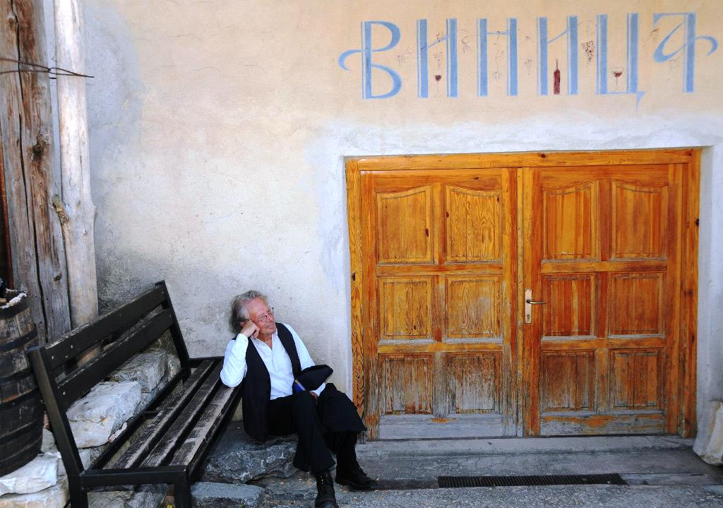 -Велика Хоча је место са Божјим благословом, али пуно несрећних људи. И зато да би их разумео долазим често. Волим да разговарам и пијем вино са овим људима. Приликом неких ранијих посета сам пешачио са њима по околним пољима, брао печурке и лековито биље, упознавао људе слушајући приче о њиховим животима и учествујући у њиховим обичајима- каже Хандке.