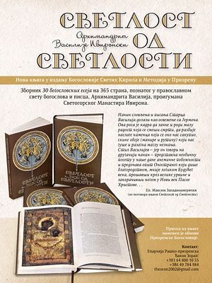 После популарне књиге Несвети а свети, архимандрита Тихона (Шевкунова) из Москве, која представља прво издање Призренске Богословије, ђаци и професори из Призрена приредили су, на општу радост читалаца, нову књигу под насловом Светлост од Светлости, аутора архимандрита Василија (Гондикакиса) Светогорца, проигумана Ивиронског.