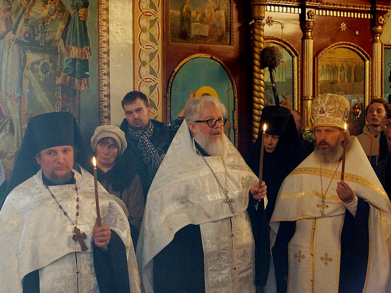 Знаменский собор и монастырский двор не вместил всех пришедших, многие остались за оградой, площадь у памятника Колчаку была заполнена людьми, для них велась трансляция на мониторах.