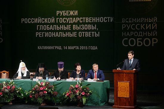 В выступлении заместителя председателя Государственной Думы А. Д. Жукова, огласившего приветствие председателя Государственной Думы С. Е. Нарышкина, сквозила следующая мысль: мы должны дать должный ответ Европе, прежде всего духовный. И особое значение в этом вопросе имеет деятельность Всемирного русского народного собора. Была озвучена и вторая важная мысль: Калининград обязательно должен ощущать опору в России и заботу России о себе.