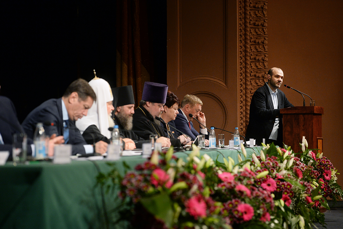 В своем докладе специалист в области государственно-конфессиональных отношений, главный редактор портала «Религия и СМИ» А.В. Щипков коснулся национального вопроса, в частности такой острой и замалчиваемой темы, как русофобия, ее политических и академических аспектов.