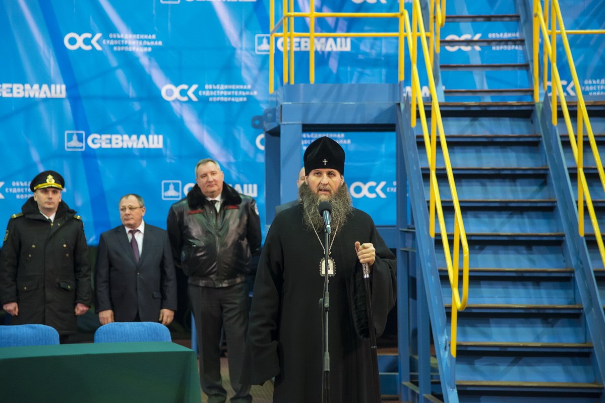 Также в церемонии закладки участвовали вице-премьер правительства Дмитрий Рогозин, главнокомандующий ВМФ России адмирал Виктор Чирков, вице-спикер Государственной Думы РФ Сергей Железняк, губернатор Архангельской области Игорь Орлов, мэр столицы Поморья Виктор Павленко, президент Объединенной судостроительной корпорации Алексей Рахманов, руководители конструкторских бюро и предприятий, вовлеченных в производственную кооперацию.