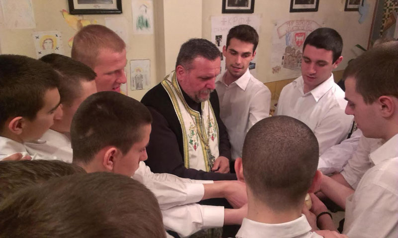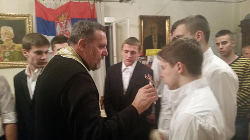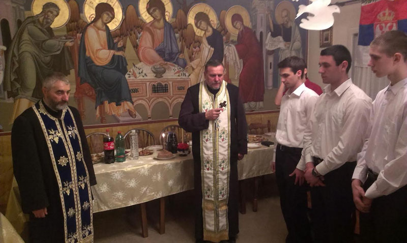 У парохијском дому при храму Светог архангела Гаврила појци су уредили трпезу љубави за своје професоре и госте. Славски колач je пререзао протојереј-ставрофор проф. др Драгомир Сандо, председник Одбора за верску наставу Архиепископије београдско-карловачке, који је честитао ђацима славу и одржао проповед.
