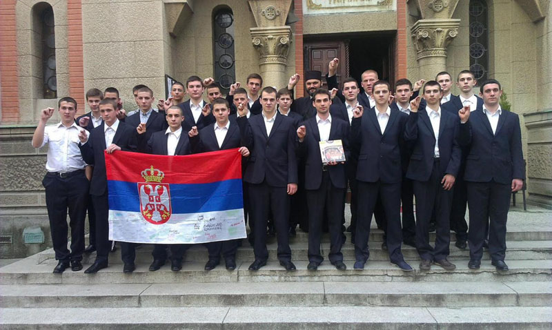 Пета година је како појци Војне гимназије прослављају своје крсно име; на почетку их је било само пет, а данас их је двадесет и пет појаца. О њима се духовно стара свештеник Јован Бабић, некадашњи ученик Војне гимназије. Председник Српске војничке појачке групе је Милан Томовић, који се стара о својој групи, али само као једнак међу свима. Иначе, Српска војничка група је основана на дан Светог Симеона Мироточивог пре пет година.