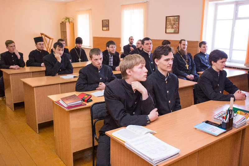 Потом су се гости Богословија састали са ученицима и Ректор Цетињске богословије говорио је о историји односа Руске и Српске православне цркве, односима Цркве и Државе у Црној Гори, о историји и садашњем положају духовне школе на Цетињу. Наставници и ученици Барнаулске богословије питали су оцаГојко Перовића о животу Цетињске богословије, животу њених ученика и наставном програму.