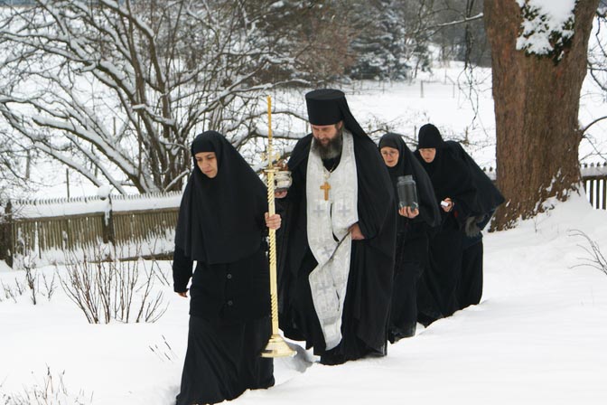 - Богослужебный цикл начинается в 18 часов девятым часом и вечерней, после чего ставится трапеза для насельниц и паломников. В 20 часов служим малое повечерие с каноном Божией Матери, после совместных молитв на сон грядущий совершается чин прощения. После этого сёстры молча расходятся по кельям. Наш владыка говорит: «Монахи должны входить в свои келии, как священник в алтарь». С 4 до 7 утра читаются утренние молитвы, поются полунощница, утреня и часы. Затем трапеза и послушания. С 12.00 до 13.45 монастырь закрывается для отдыха, сёстры и паломницы находятся в своих кельях. Затем 15-минутный чай и опять послушания. Одни из нас возделывают сад, обрабатывают землю, обеспечивая обитель продуктами. Другие работают в просфорне, в пошивочной и переплётной мастерских. Ну и с 16 до 18 часов, то есть до начала следующего богослужебного цикла, наступает время келейного правила. Монастырь замирает. Паломницам не разрешается ходить по монастырю, нарушая тишину.