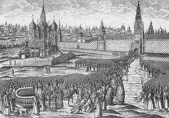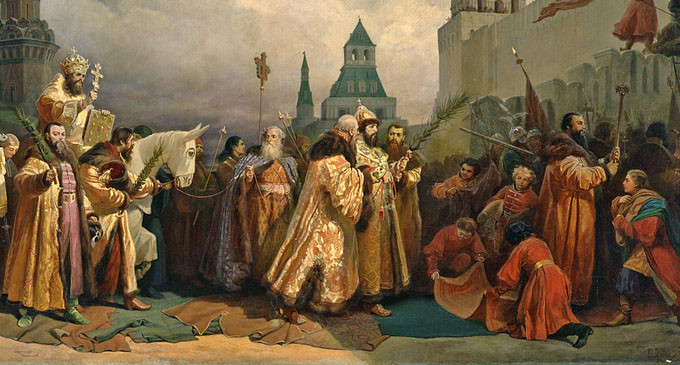 В XVI веке в России появилась оригинальная традиция шествия на осляти, которая являлась подражанием и воспоминанием о входе Господа в Иерусалим. В Москве шествие изначально совершалось только в Кремле (как правило, около соборов), а с XVII века оно уже выходило за Спасские ворота по направлению к храму Василия Блаженного. До нас дошло описание шествия на осляти второй половины XVII столетия.