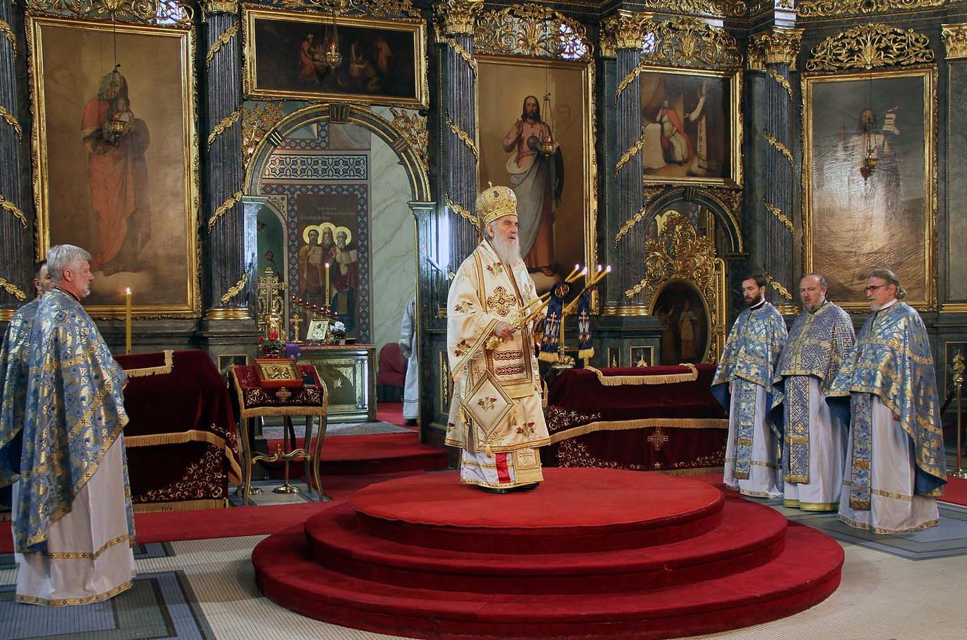 Његова Светост Патријарх српски г. Иринеј служио је данас, 7. априла 2015. године, на празник Благовести, свету архијерејску Литургију у Саборном храму Светог архангела Михаила у Београду