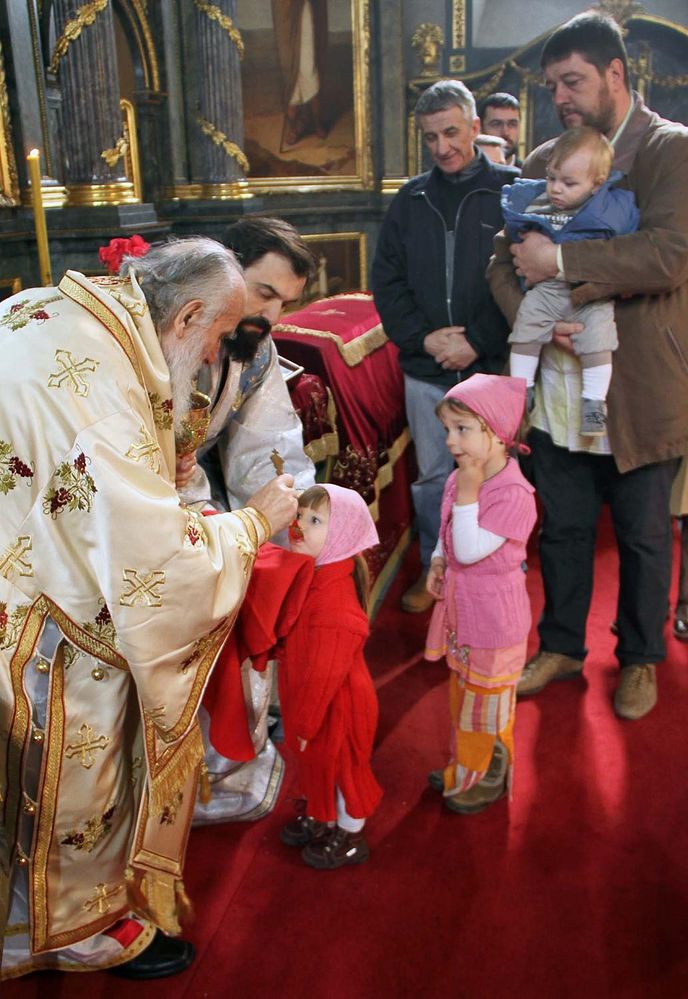 Отац Славиша Поповић у београдској Саборној цркви током евхаристијског сабрања рекао је да нас Благовести подсећају да је човек створен да помоћу Господа Исуса и Богородице постане наданђелско биће и да живи у вечним истинама, радостима. Само са Њом се све диже из смрти, греха и лети ка Небеским светлима, кроз Њу је наша природа добила прилику за нови одговор који је прво дао Адам. Она каже "Нека ми буде по Речи Твојој". Од нас се тражи само добра воља, да будемо ходећа Јеванђеља, живе Благовести и победимо грех. Отац је посебно истакао грех гнева као претечу сваке страхоте и злочина.