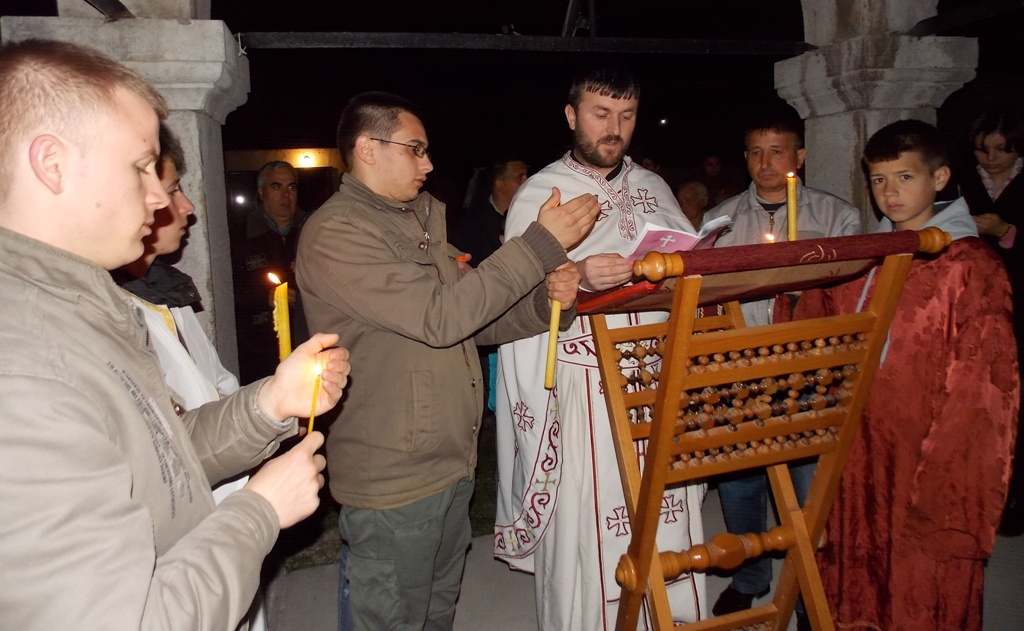 Поноћном Литургијом у цркви Успења Пресвете Богородице, коју је служио парох ораховачки отац Срђан Јеринић, почело је обележавање најрадоснијег хришћанског празника Васкрсења Господњег. Узимајући светлост од ,,Незалазне Светлости“ и одрасли и деца са свећама у рукама и лицима обасјаним радошћу, ишли су у опход око цркве, на којој су се недавно уздигли нови крстови, док су их пратили звуци звона са реконструисаног звоника. Дечица, најрадоснија, хитала су Светом путиру да се причесте Телом и Крвљу Господњом, а за њима, у дугачком низу, прилазили су и одрасли.